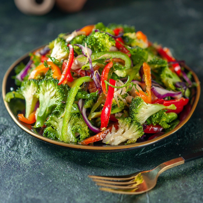A refreshing side salad featuring a crisp mix of seasonal greens and colorful vegetables, available as an additional item to complement your meal.
